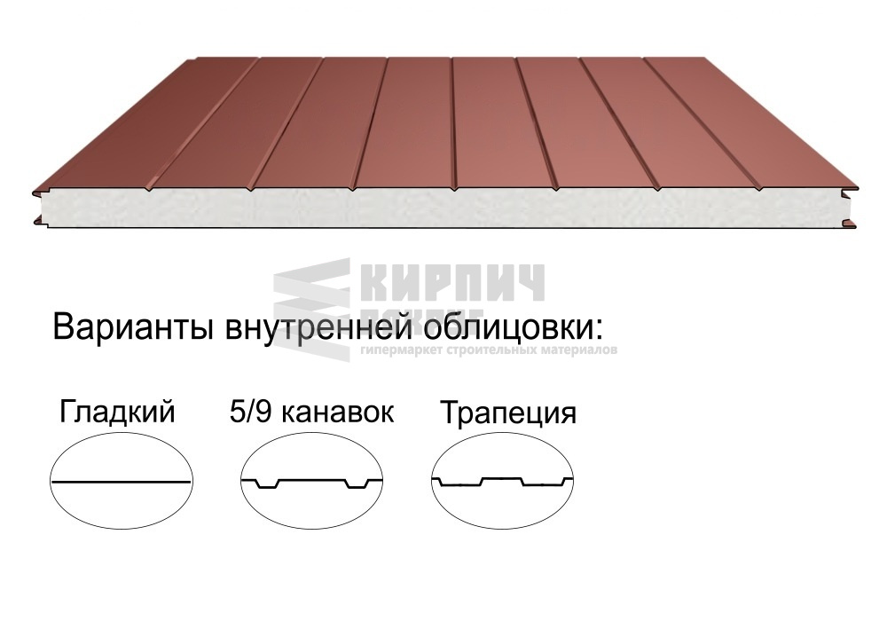 Раздел ТрёхслойныеСтроительный материал, имеющий трёхслойную структуру, состоящую из двух листов металла и слоя утеплителя между ними.